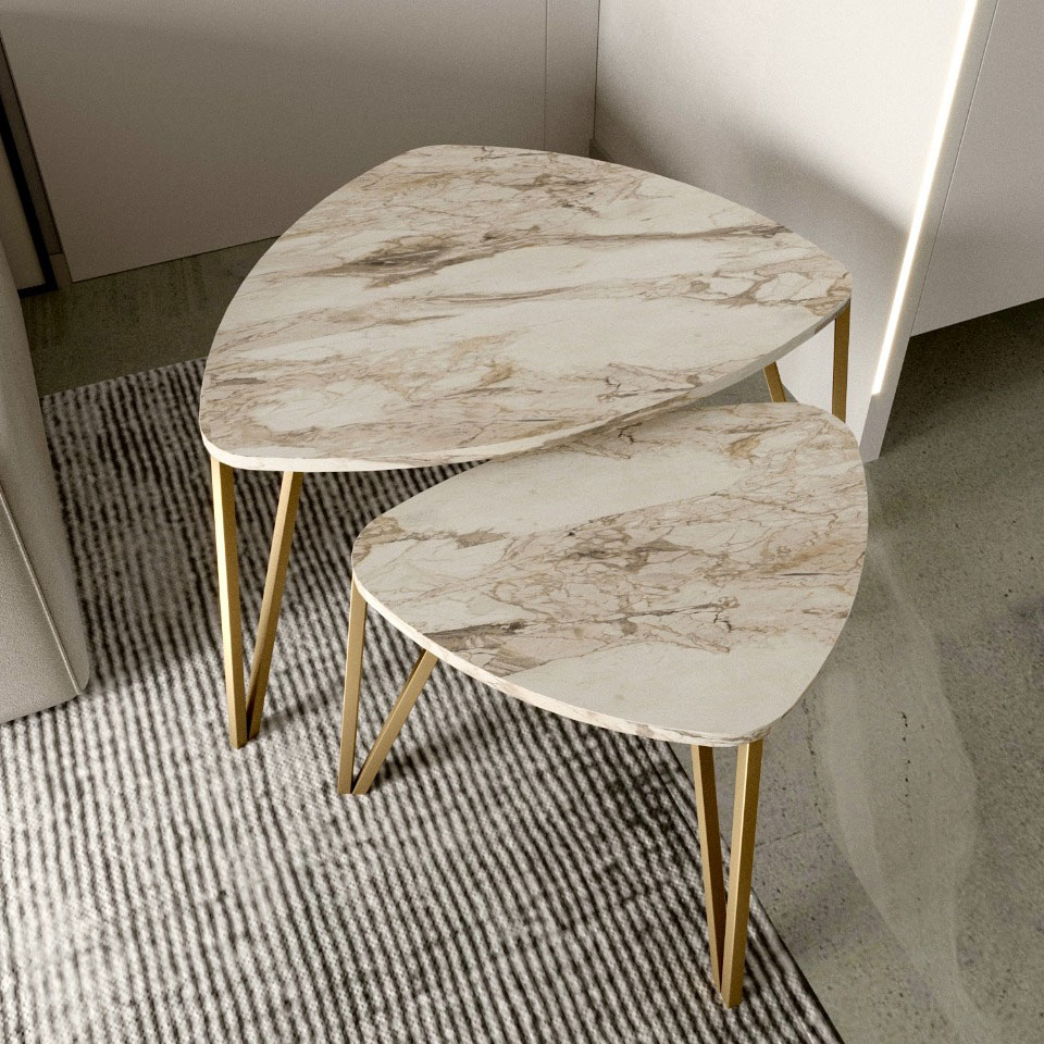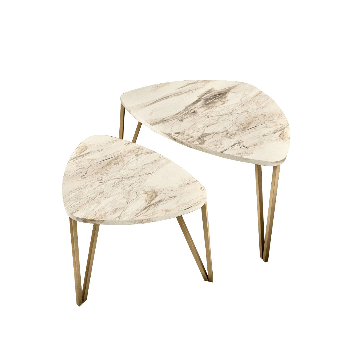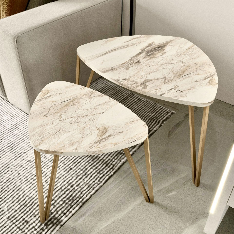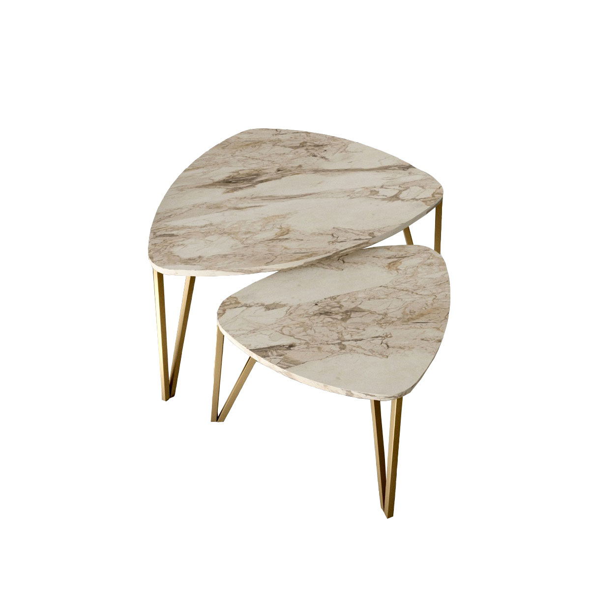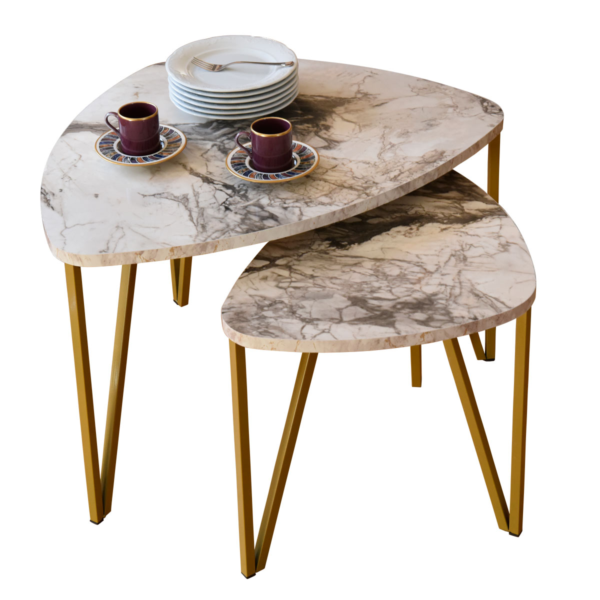 Klub sto Bello je set od dva stočića idealnih za Vaš dnevni boravak, terasu, balkon, predsoblje ili sobu za odmor i rekreaciju. Izrađeni su od metala sa drvenom pločom u šablonu belog mermera što ih čini izdržljivim i praktičnim za korišćenje i rukovanje.