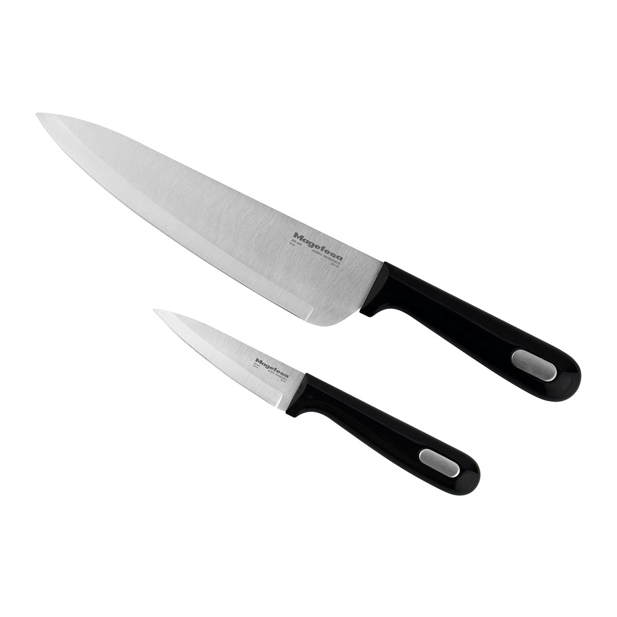 Mestre 2 je elegantan i praktičan set kuhinjskih noževa od dva elementa španskog proizvođača Magefesa. Sastoji se od velikog kuhinjskog noža i manjeg noža za ljuštenje. Zajedno kompletiraju i zadovoljavaju sveobuhvatne potrebe jedne moderne kuhinje, pokazaće se izuzetno korisnim i upotrebljavati se svakodnevno.