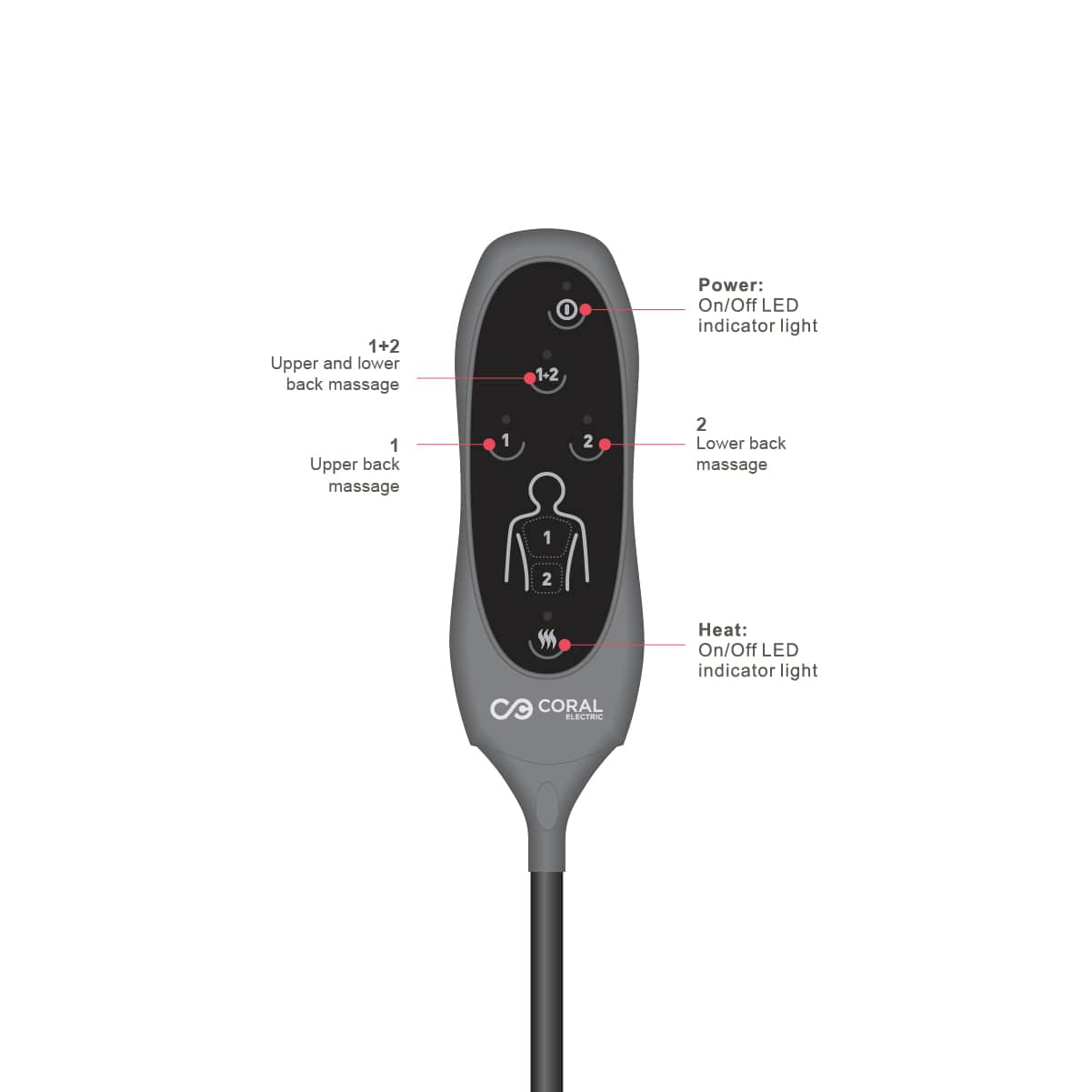 - Dve funkcije: masaža leđa, termoterapija