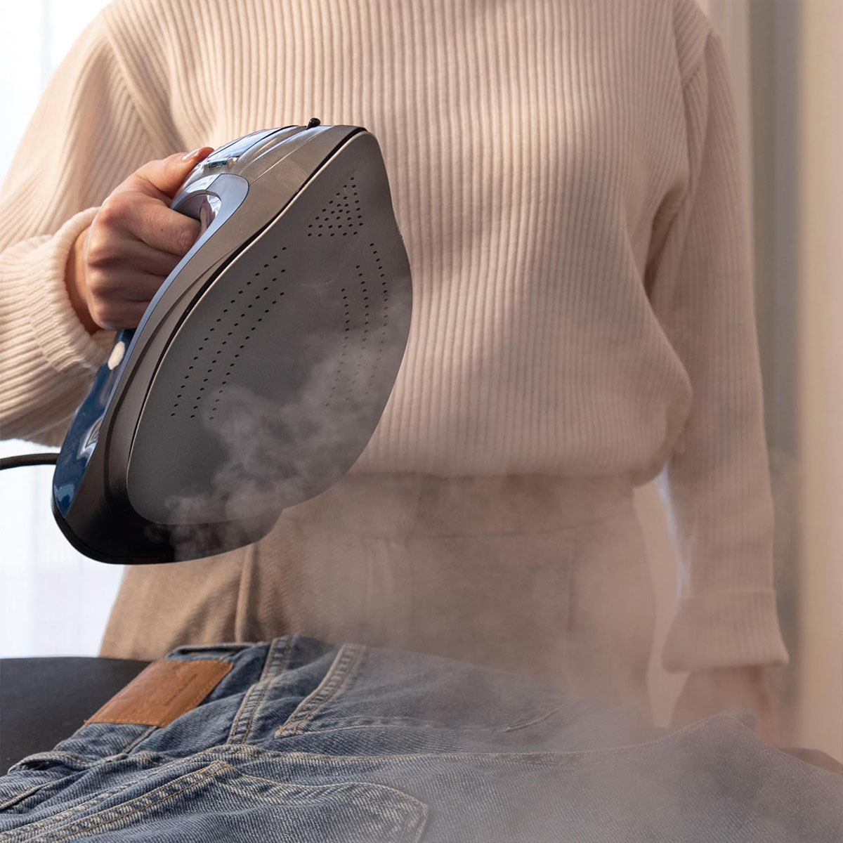 Napredne DripBlock i AntiCalc funkcije sprečavaju kapanje i stvaranje kamenca dok sigurnosni sistem za automatsko isključivanje usled neaktivnosti radi i u horizontalnom i u vertikalnom položaju. Elegantan i skupocen dizajn pegle kompletira LED svetlo na ručki tokom korišćenja.