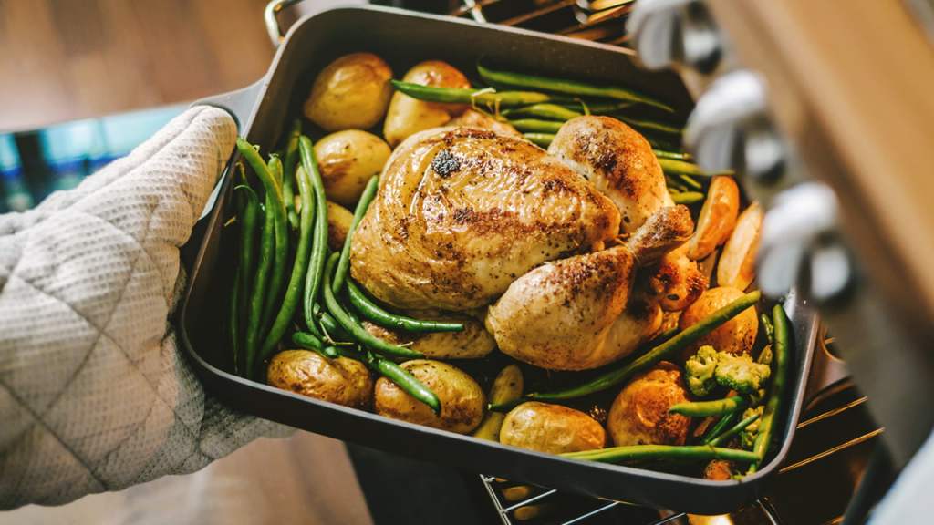 Meso se peče u sopstvenim sokovima a sva suvišna masnoća ostaje u pekaču. Vi dobijate ukusniji i zdraviji obrok, a Vaša rerna ostaje blistavo čista.