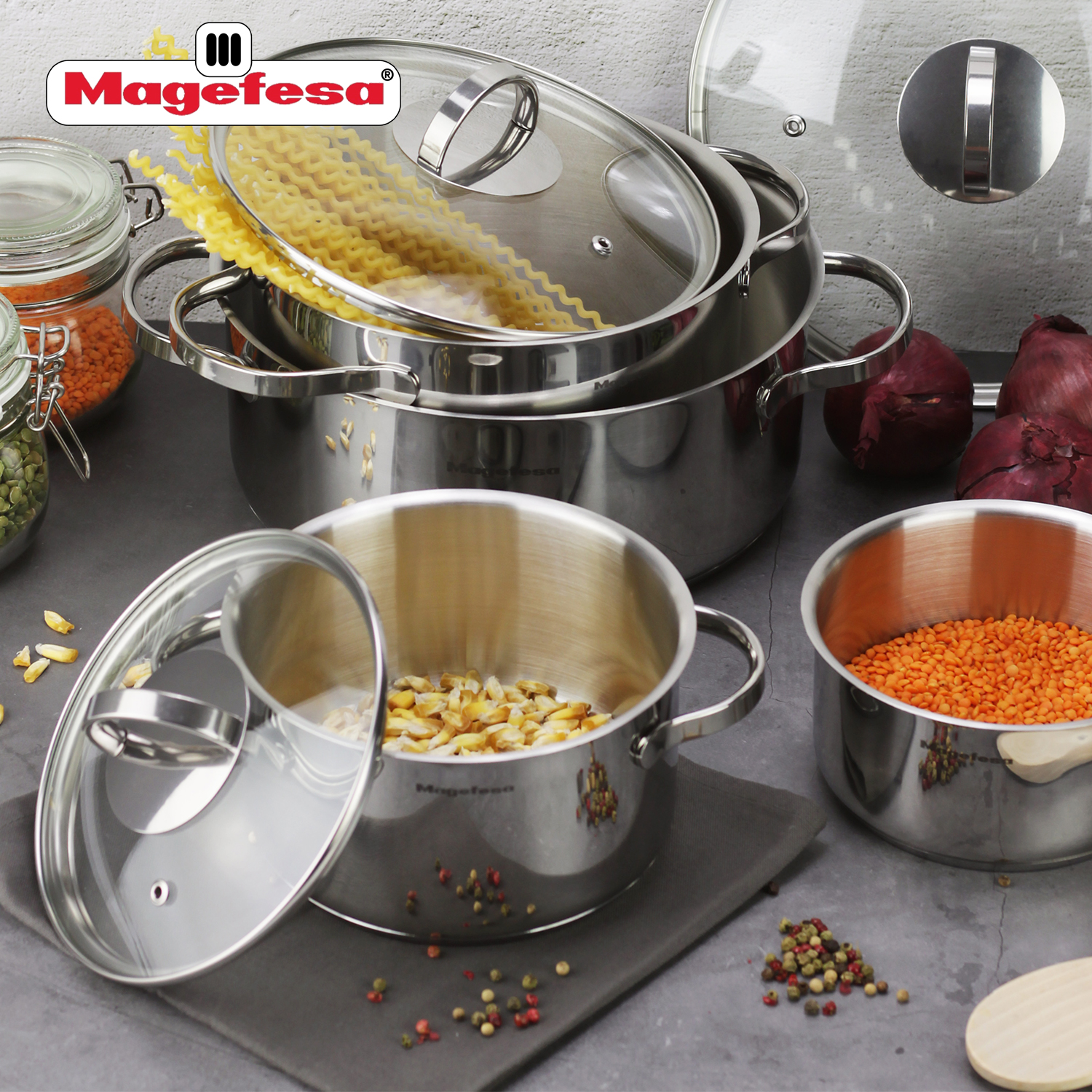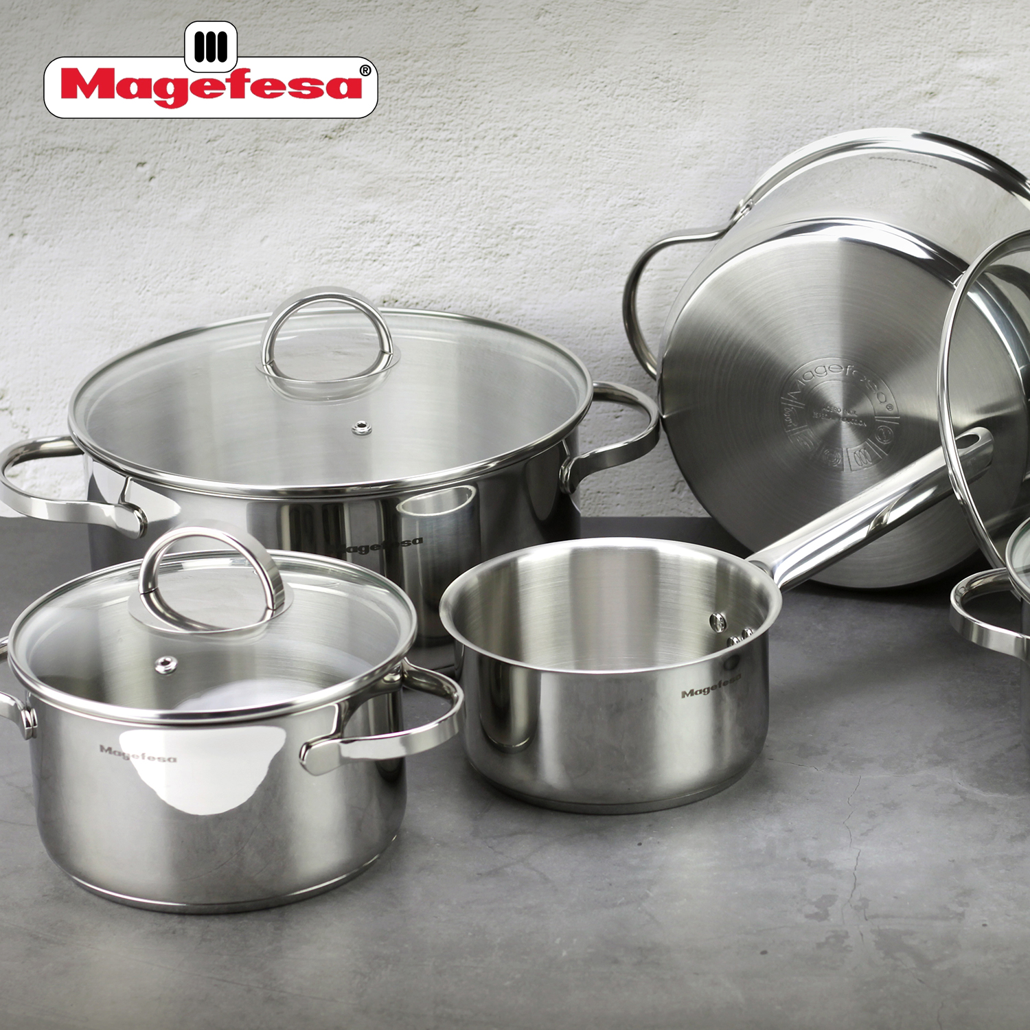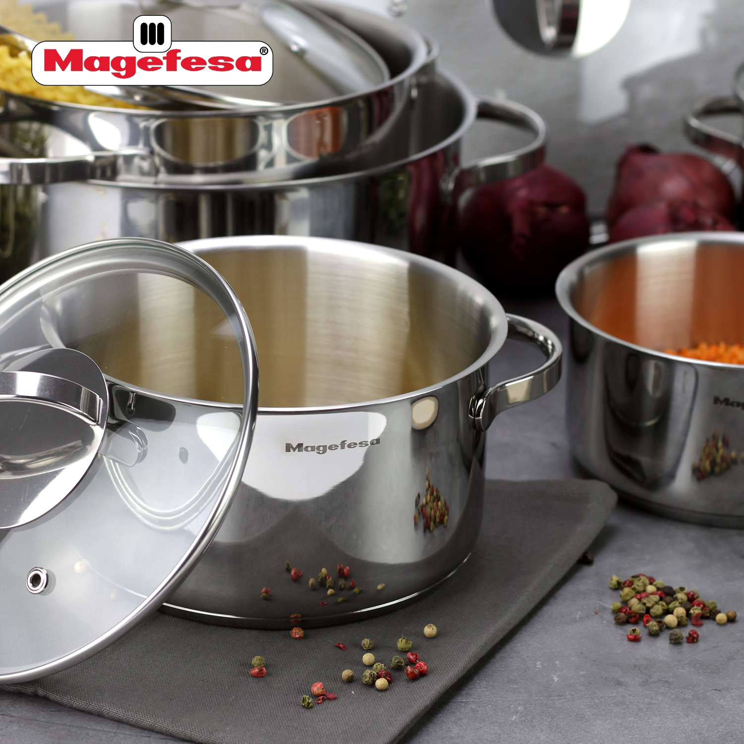 MAG linija proizvoda je u potpunosti izrađena od visokokvalitetnog nerđajućeg čelika, izuzetno otpornog materijala koji je prošao najzahtevnije testove kvaliteta i izdržljivosti. Poklopci ovog proizvoda su napravljeni od stakla otpornog na toplotu i nisu pogodni za rernu, za razliku od čeličnih tela koja se mogu koristiti bez poklopca do temperature od 200º.