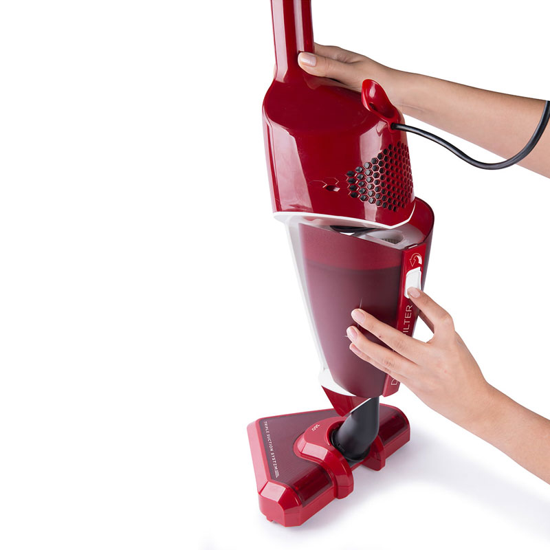 Štapni usisivač stoji uspravno i zauzima manje mesta nego velike baze sa crevom i cevima klasičnih usisivača. Možete ga držati iza vrata, u ormanu ili ostavi i čim Vam zatreba istog časa je spreman.