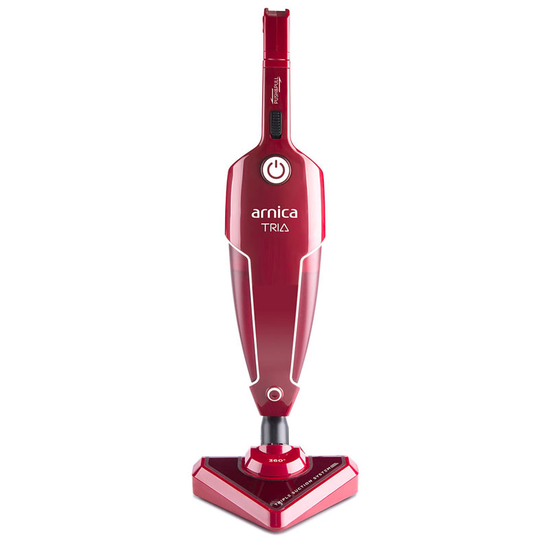 Usisivač Arnica Tria Pro je 2 u 1 usisivač – štapni i ručni. Njegova teleskopska cev omogućava da ga tokom usisavanja prilagodimo kako našoj visini, tako i našim potrebama. Dovoljno je da se cev uvuče, a od usisivača odvoji trouglasti nastavak za pod, i u trenutku se usisivač iz štapnog transformiše u ručni.