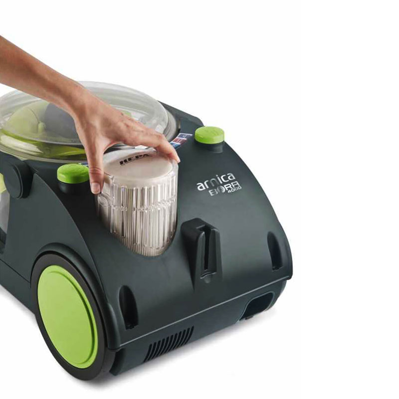 Pre nego što usisivači na vodu ispuste vazduh nazad u prostoriju, on mora proći kroz HEPA filter. HEPA je izuzetno efikasan sistem za filtriranje mikro čestica iz vazduha koji je u stanju da zadrži najveći broj mikro-alergena.